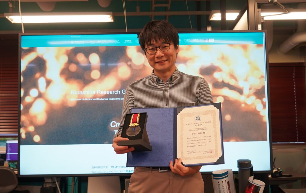 2024年度 化学とマイクロ・ナノシステム学会若手優秀賞の受賞 2025 5/19 2025年5月19日 先日,化学とマイクロ・ナノシステムに関連する研究が評価され,倉科先生が化学とマイクロ・ナノシステム学会 “若手優秀賞”を受賞されました.倉科先生,おめでとうございます! さいぼーくん おめでたい…! Achievement Event News